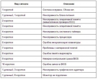 Це відбувається не випадково, ці сигнали служать для попереднього визначення можливої несправності компонентів комп\’ютера, і розшифрувавши код несправності, ми будемо знати, який саме пристрій викликає помилку.