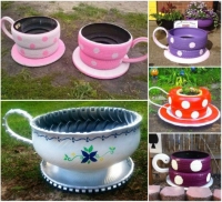 Фантазери придумали навіть дві чашки, які виконані з шин і стоять на ділянці. Основну чашу вирізають, а ручки можна зробити з металевої стрічки.